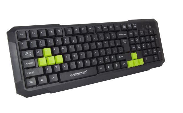 | Opis ogólny | Klawiatura przewodowa Esperanza EGK102G Aspis dla graczy USB zielona |
