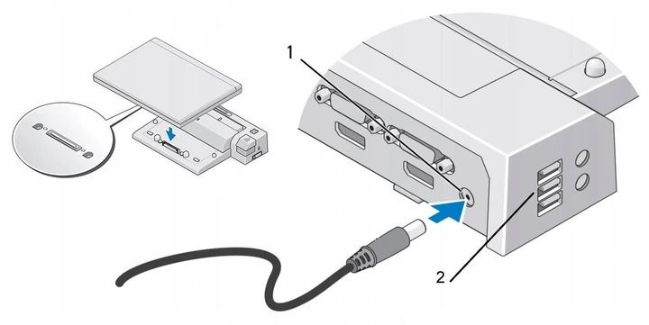 - Podłącz zasilanie do stacji dokującej